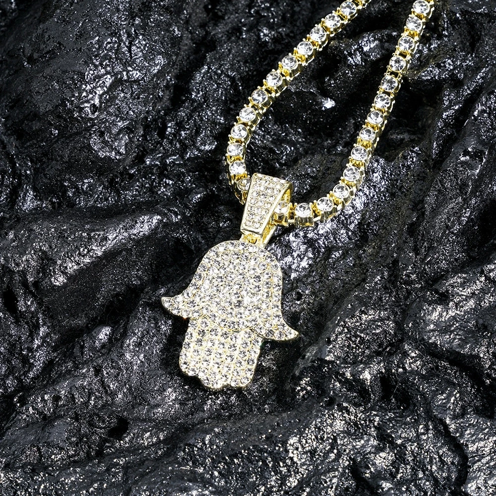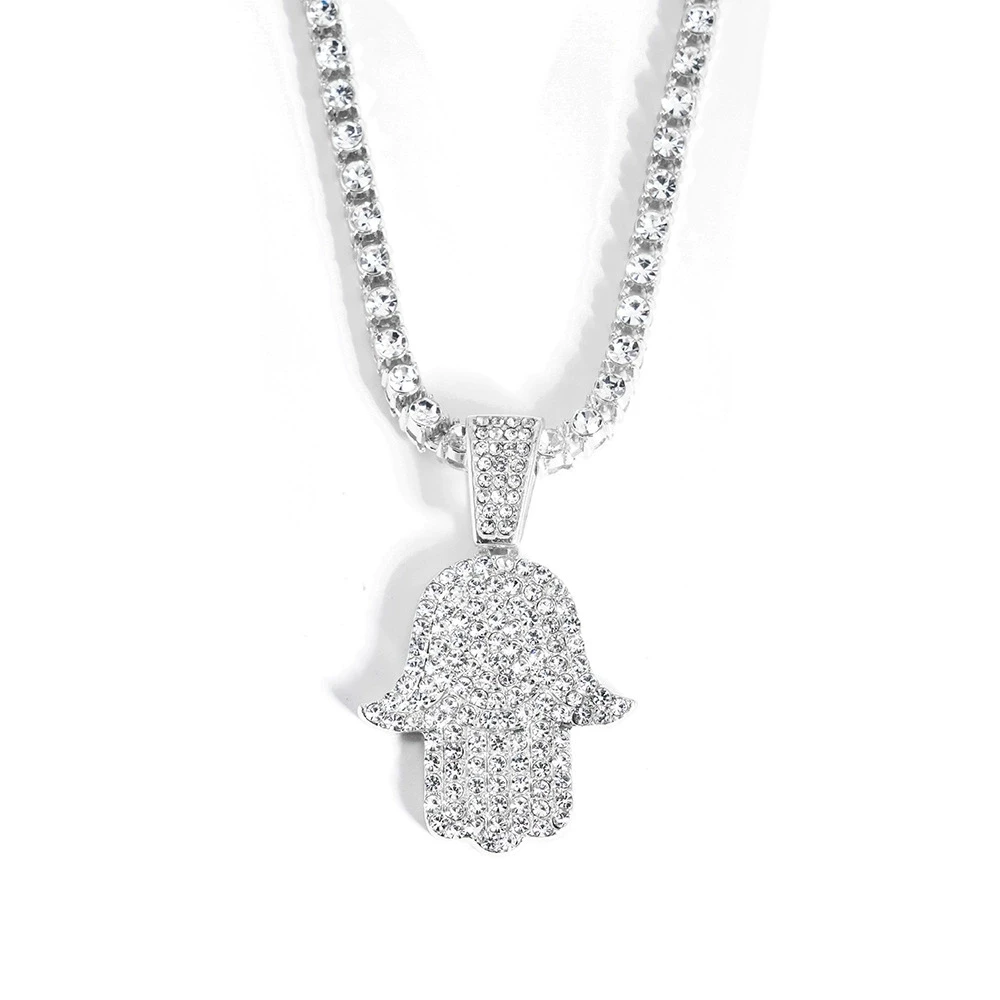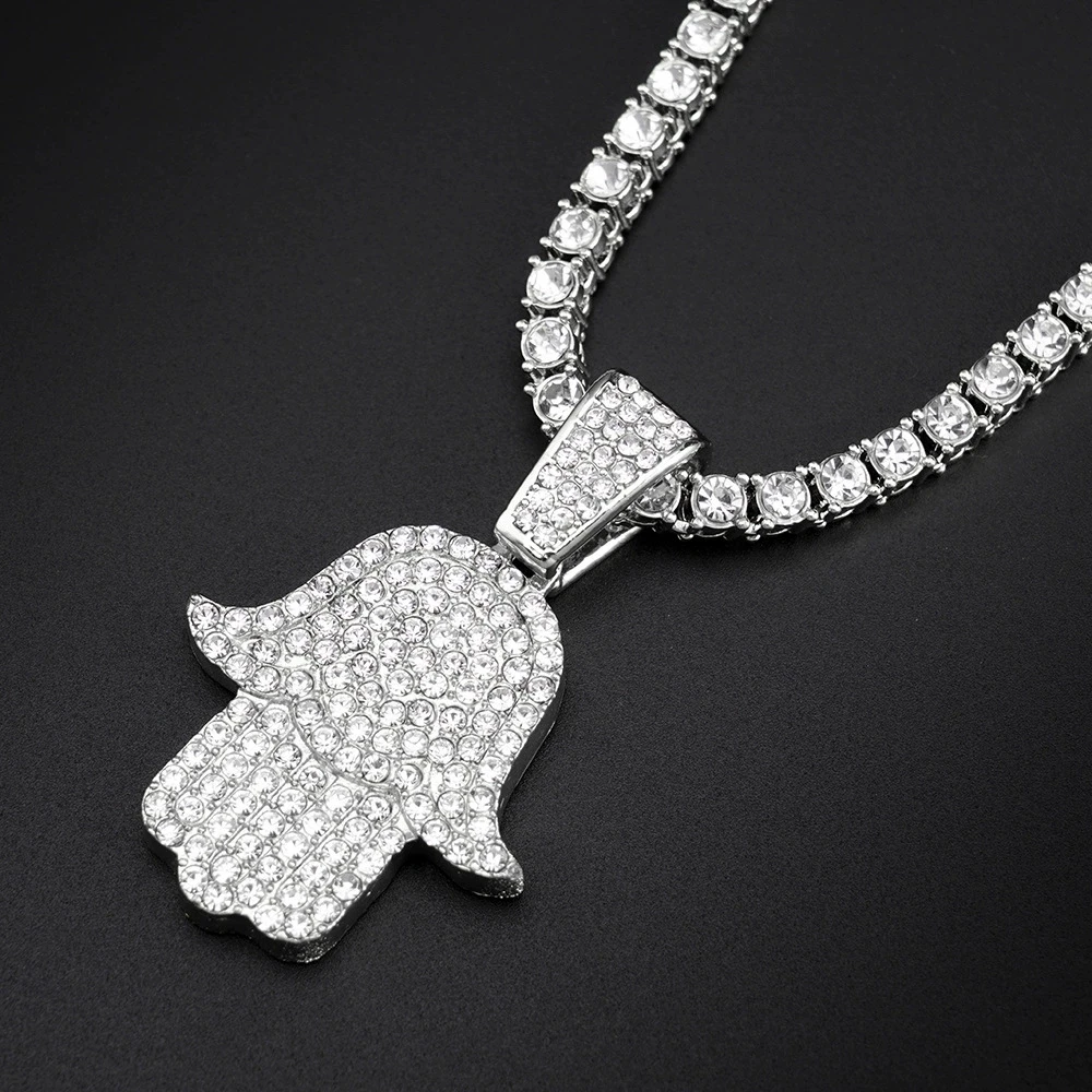 Men’s Women Hip Hop Hamsa Hand Pendants Necklaces With 4mm Crystal Tennis Chain Punk Rapper Jewelry Hiphop Style Couple Gifts